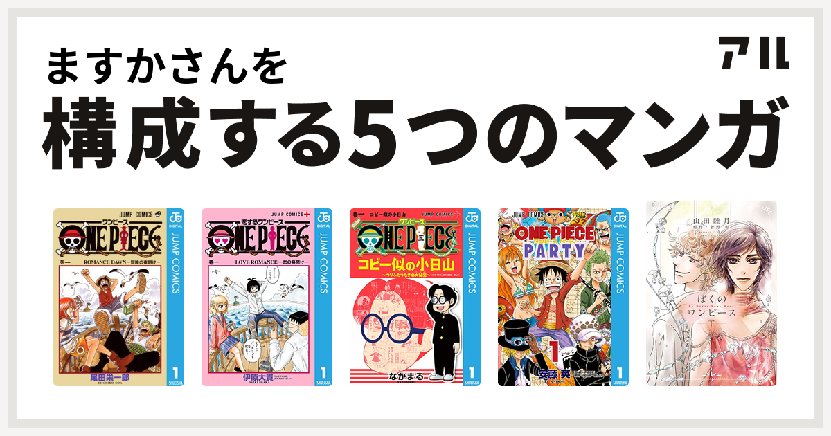 ますかさんを構成するマンガはone Piece 恋するワンピース One Piece コビー似の小日山 ウリふたつなぎの大秘宝 ワンピース パーティー ぼくのワンピース 私を構成する5つのマンガ アル